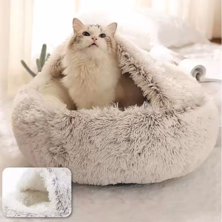 - 2-in-1 Design: Featuring a round cover and a mattress, this 2-in-1 design is perfect for small dogs and cats, offering both comfort and warmth.